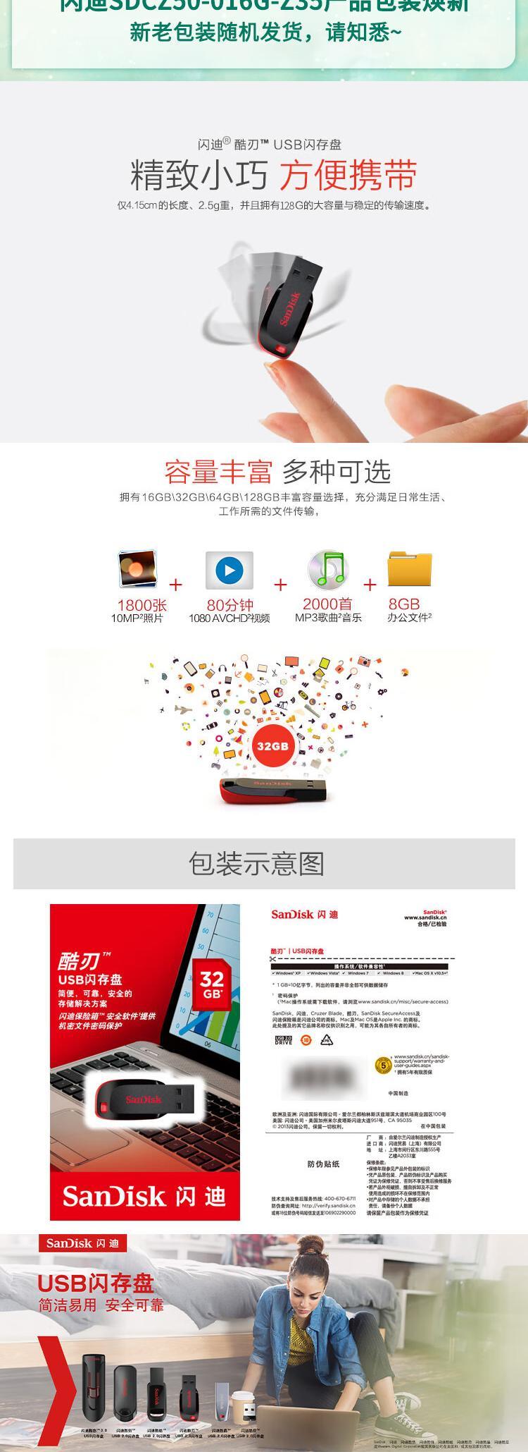 闪迪(SanDisk)酷刃™ USB闪存盘采用经典直插式设计,结构紧凑,便于随身携带。产品尺寸为41.5mm×17.6mm×7.4mm,重量轻巧,仅约2.5克,适合日常办公、学习及旅行使用。该U盘支持USB 2.0接口,兼容性广泛,可连接Windows XP至Windows 8以及Mac OS X v10.5+系统,满足多种设备的读写需求。存储容量高达64GB,可容纳大量文件,如1800张高清照片、80分钟1080P视频、2000首MP3音乐或8GB办公文档,充分满足用户多样化数据存储需求。内置原厂Nand Flash芯片,确保数据传输稳定可靠,读取速度可达100MB/s,写入速度约为900MB/s,性能表现优异。此外,产品配备闪迪保险箱™安全软件,支持128-bit AES加密技术,提供密码保护和私密文件夹功能,保障敏感数据的安全性。整机采用金属外壳设计,提升耐用性和抗干扰能力,工作温度范围为0°C~45°C,存储温度可达-10°C~70°C,适应多种环境条件。产品提供五年质保服务,只换不修,售后无忧。