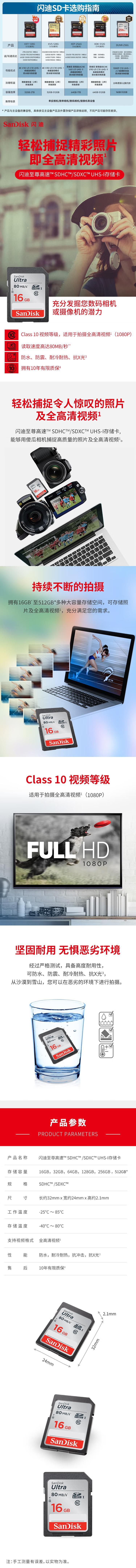 SANDISK(闪迪) SDHC UHS-I 存储卡 16GB内存卡 C10 UHS-I 读速80MB/s