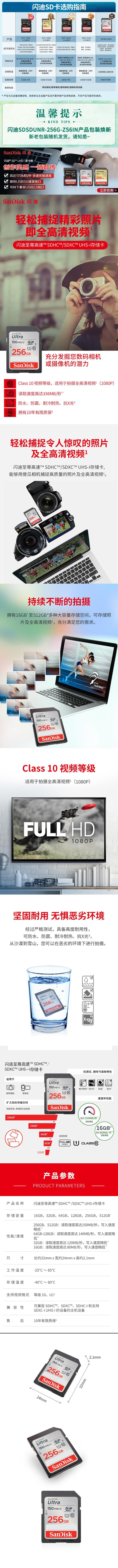 闪迪(SanDisk)SDSDUNR-256G-ZS6IN是一款256GB容量的SDXC UHS-I存储卡,专为高性能影像拍摄设计。其读取速度高达150MB/s,写入速度略低,能够满足全高清(1080P)视频录制需求,支持Class 10和UHS Speed Class 1(U1)标准,确保流畅的连续拍摄体验。