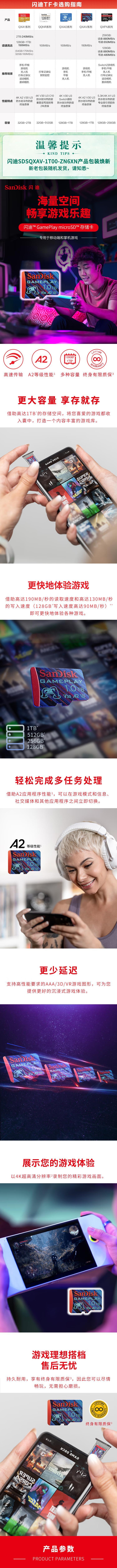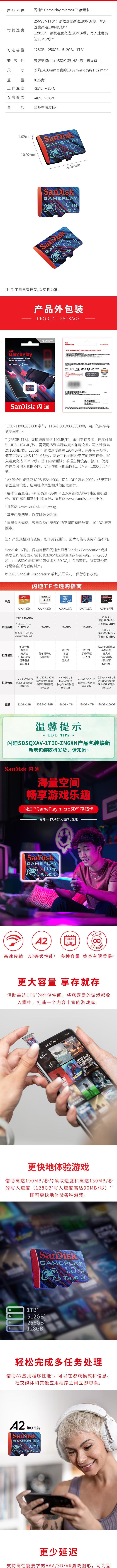 SANDISK(闪迪) 手游专用 microSDXC UHS-I 存储卡 1TB V30 U3 C10 A2 读速190MB/s 写速130MB/s