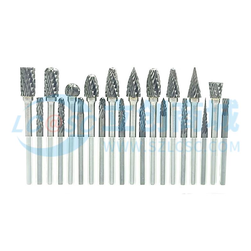 刀头设计多样,包含多种形状如圆柱形、锥形、球形、倒角、平头等,适用于不同加工需求,满足精细打磨、雕刻、去毛刺、修边等多种操作。