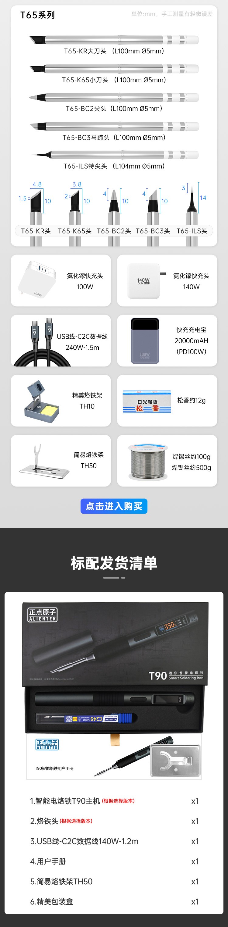 发热芯使用:T90A、T90B、T90C型号分别使用T210、T245、T65发热芯,不同型号的发热芯不可互换;新发热芯初次使用时会出现温度跳动现象,反复使用几次后温度会趋于稳定。