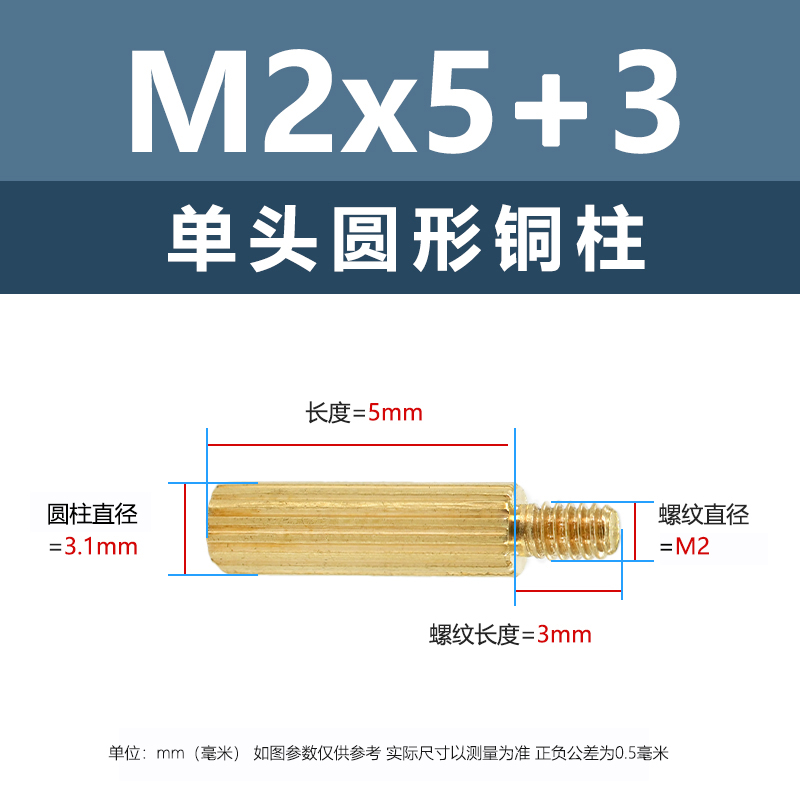 新宏辉达 黄铜单通头圆形铜柱 PCBA主板紧固隔离螺柱 M2*5+3 DTTZ1004