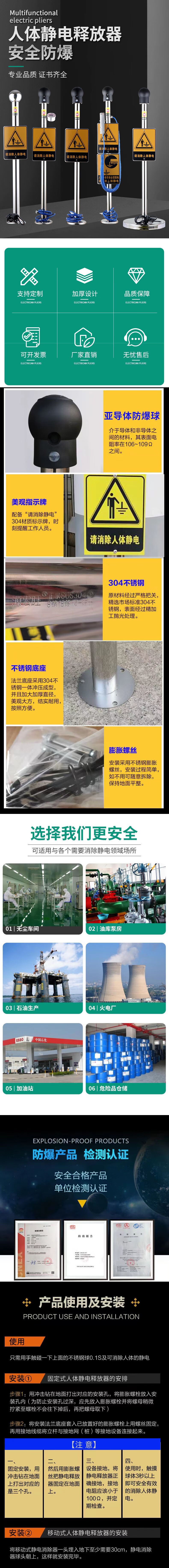 京酷人体静电释放器静电消除器工业静电释放柱桩仪除静电装置本安型语音报警防爆型