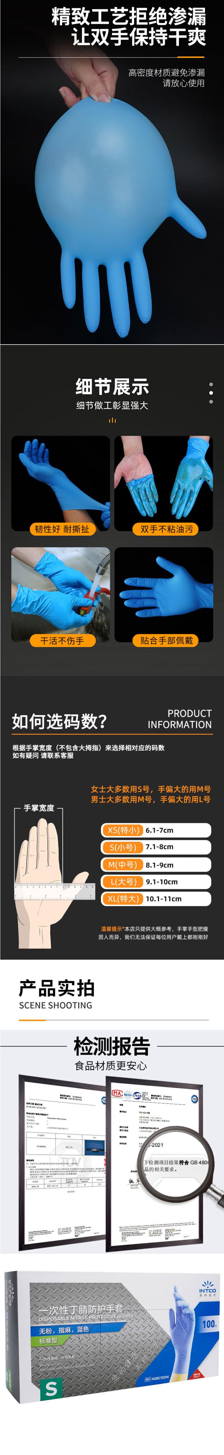 INTCO(英科) 一次性医用蓝色丁腈检查手套 无粉指麻 蓝色 M码