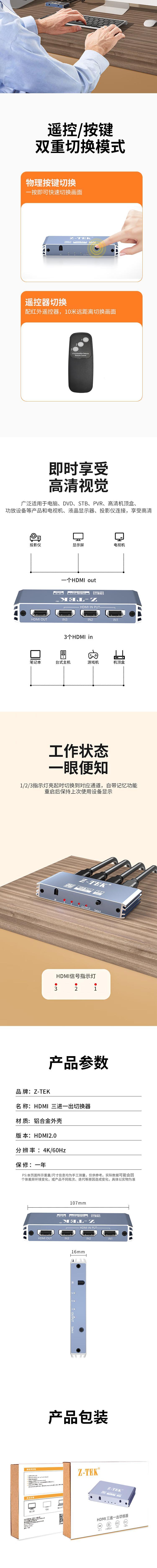 Z-TEK(力特) ZY451 HDMI 2.0 1 TO 4 SPLITTER 分配器