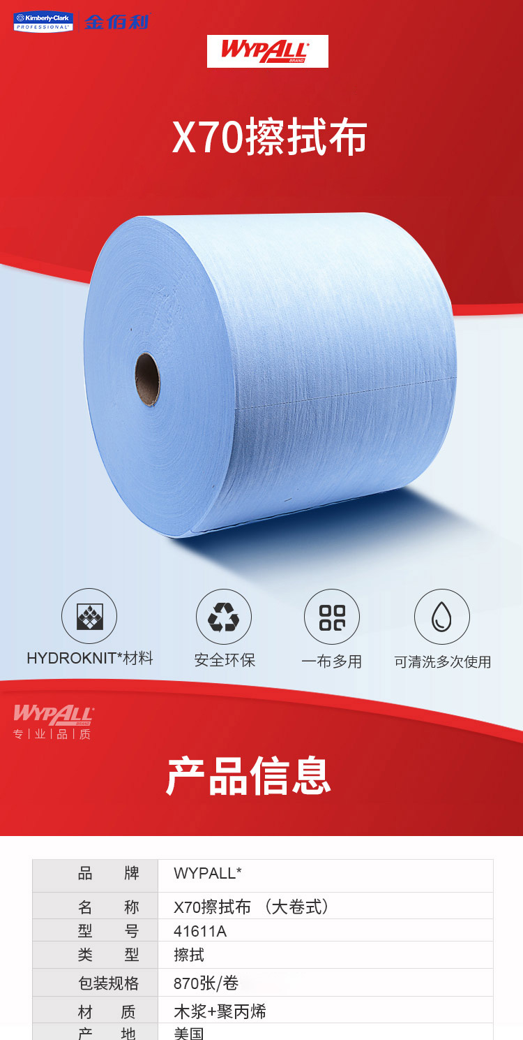 [一整卷870张] Kimberly-Clark(金佰利) X70 全能型擦拭布 (大卷式)41611A