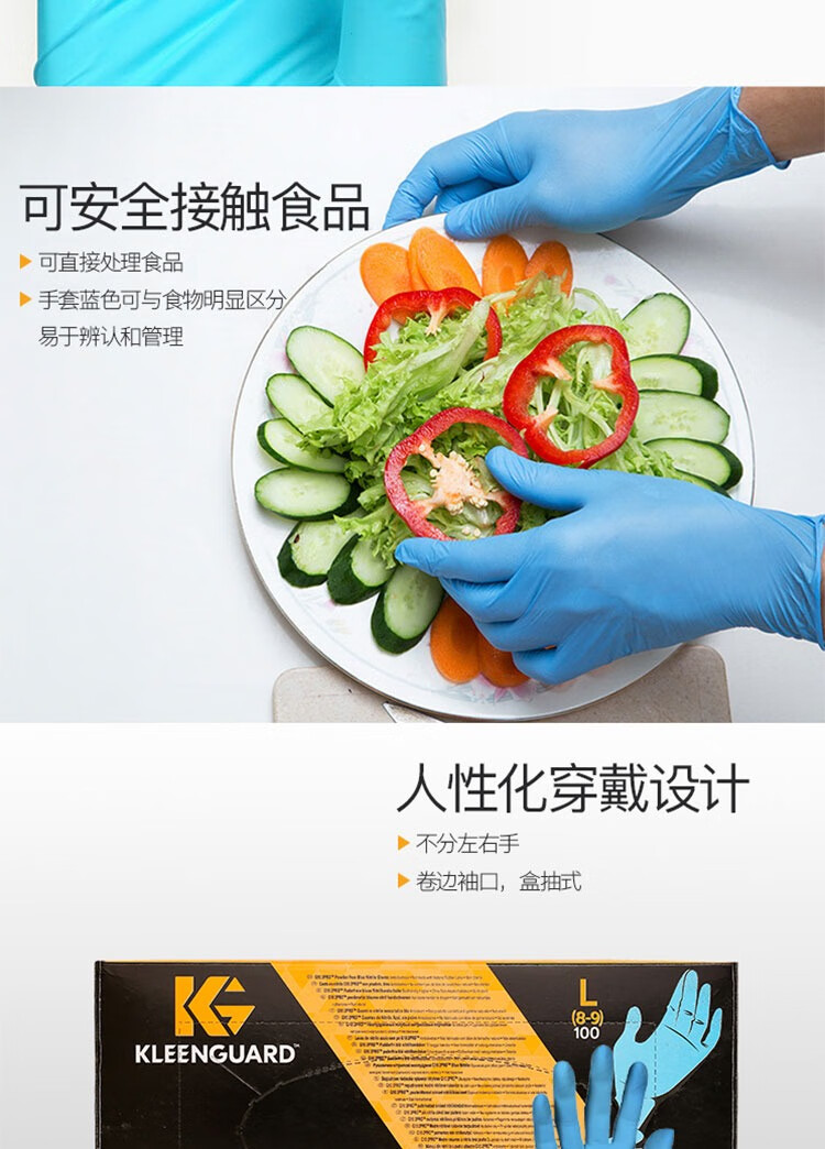 1 食品行业:在食品加工、餐饮服务中,蓝色手套与食物形成明显区分,便于辨认和管理,确保食品安全卫生。