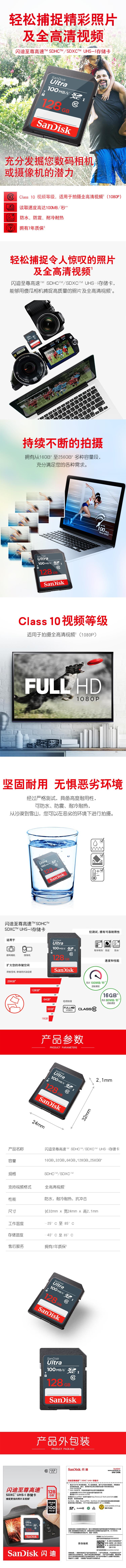 SANDISK(闪迪)128GB SD卡 相机内存卡 C10 SDSDUNB-128G-ZN3IN