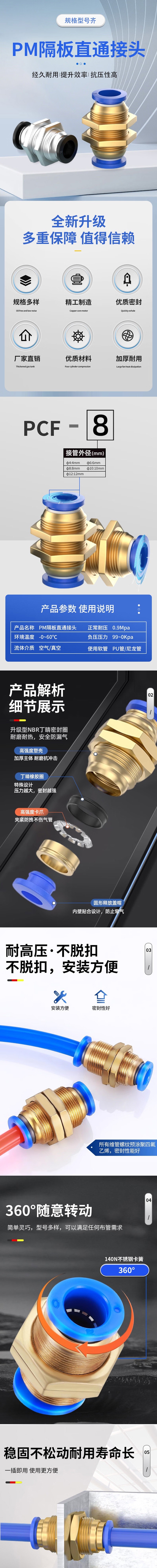 威尔克VRK PM系列隔板直通接头 黑色精品PM-8 VKB874