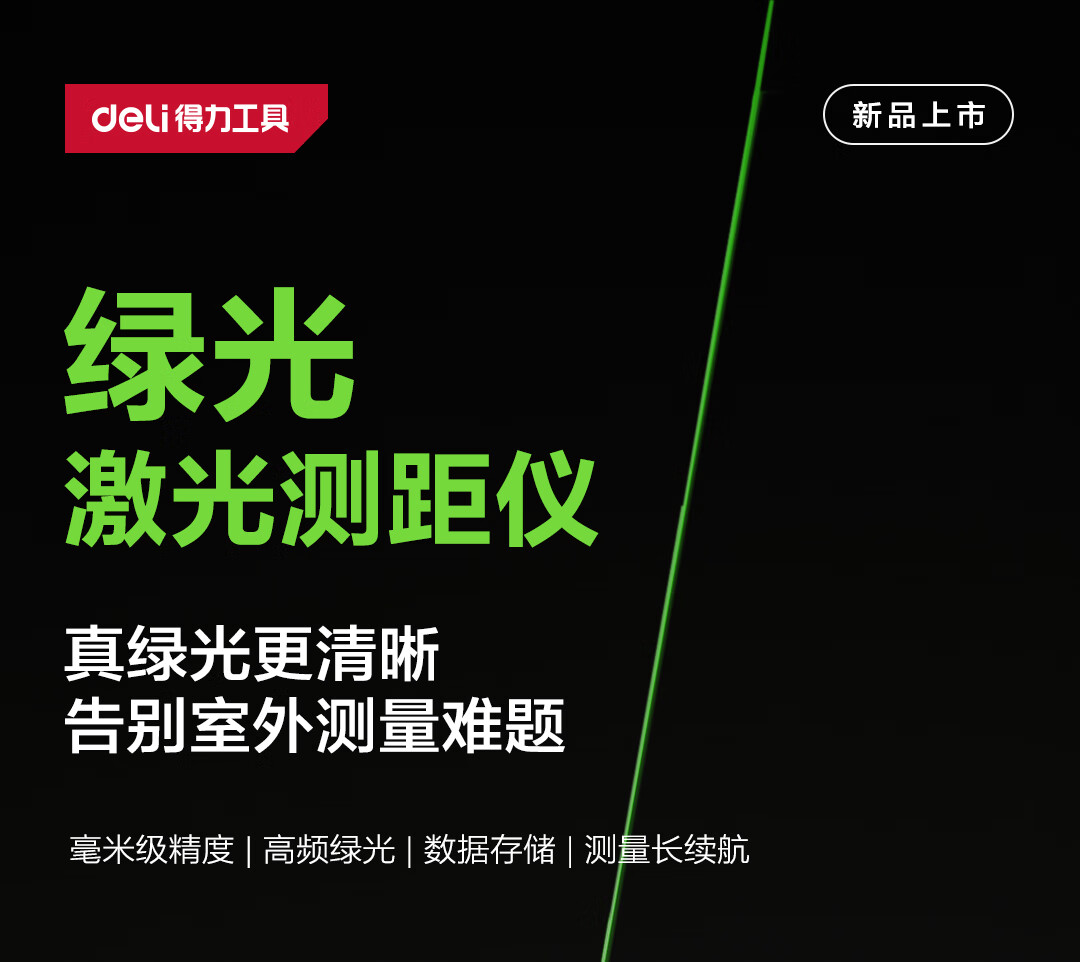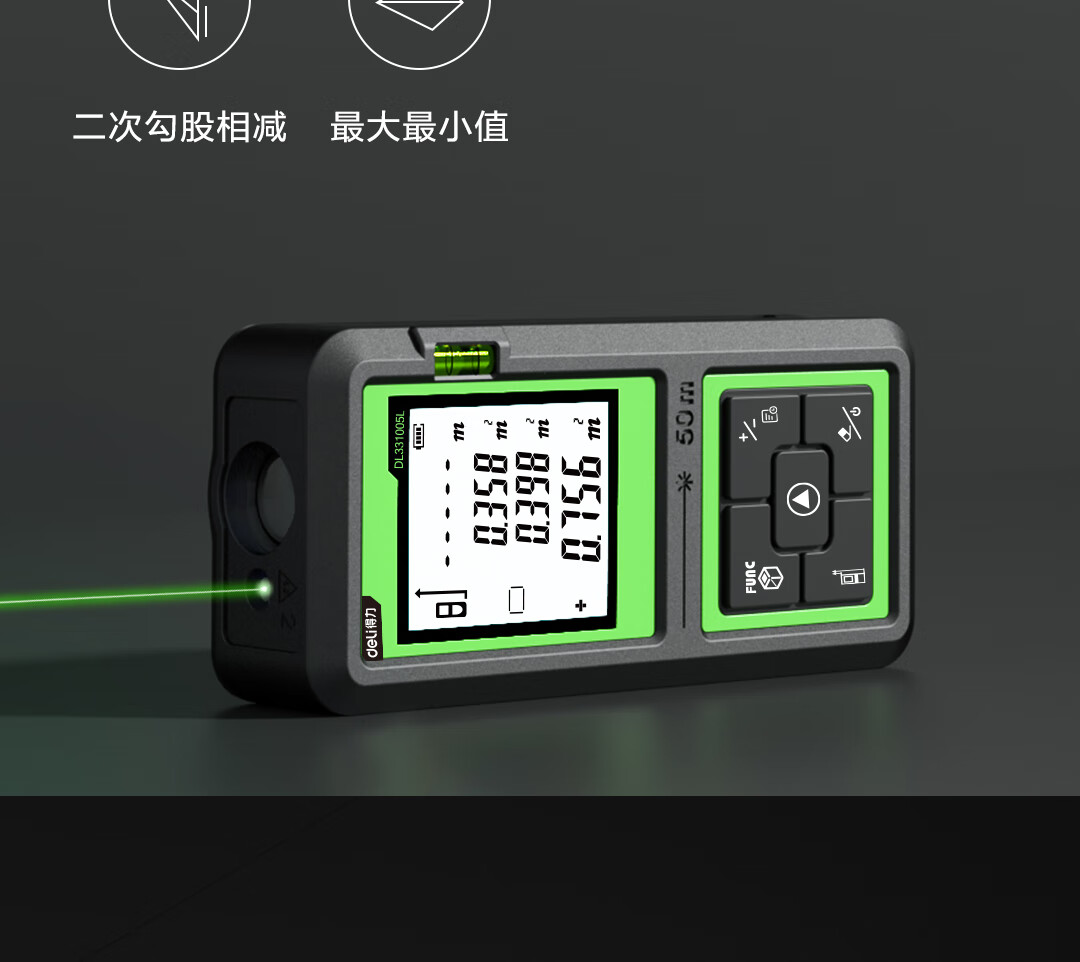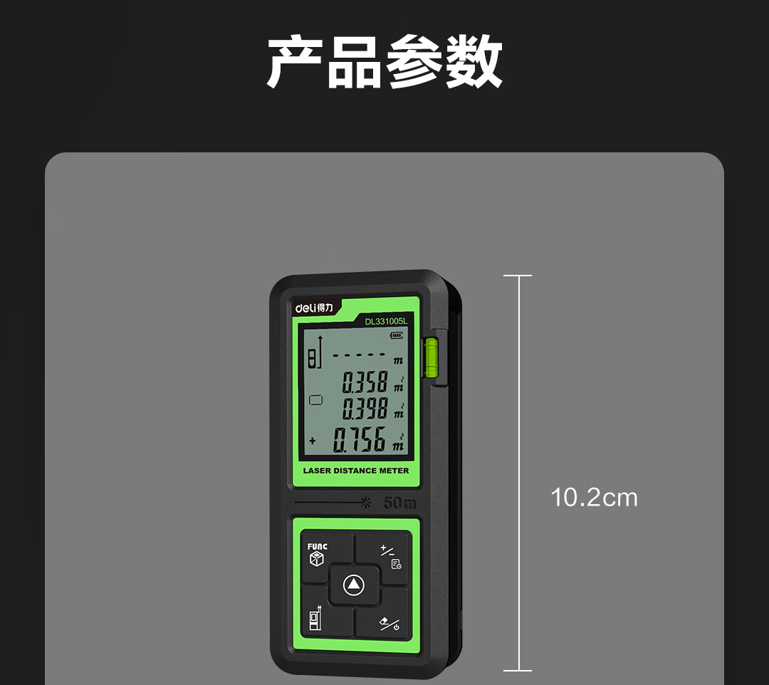 得力工具 激光测距仪50m绿光干电(绿)(台);DL331005L 货期5天