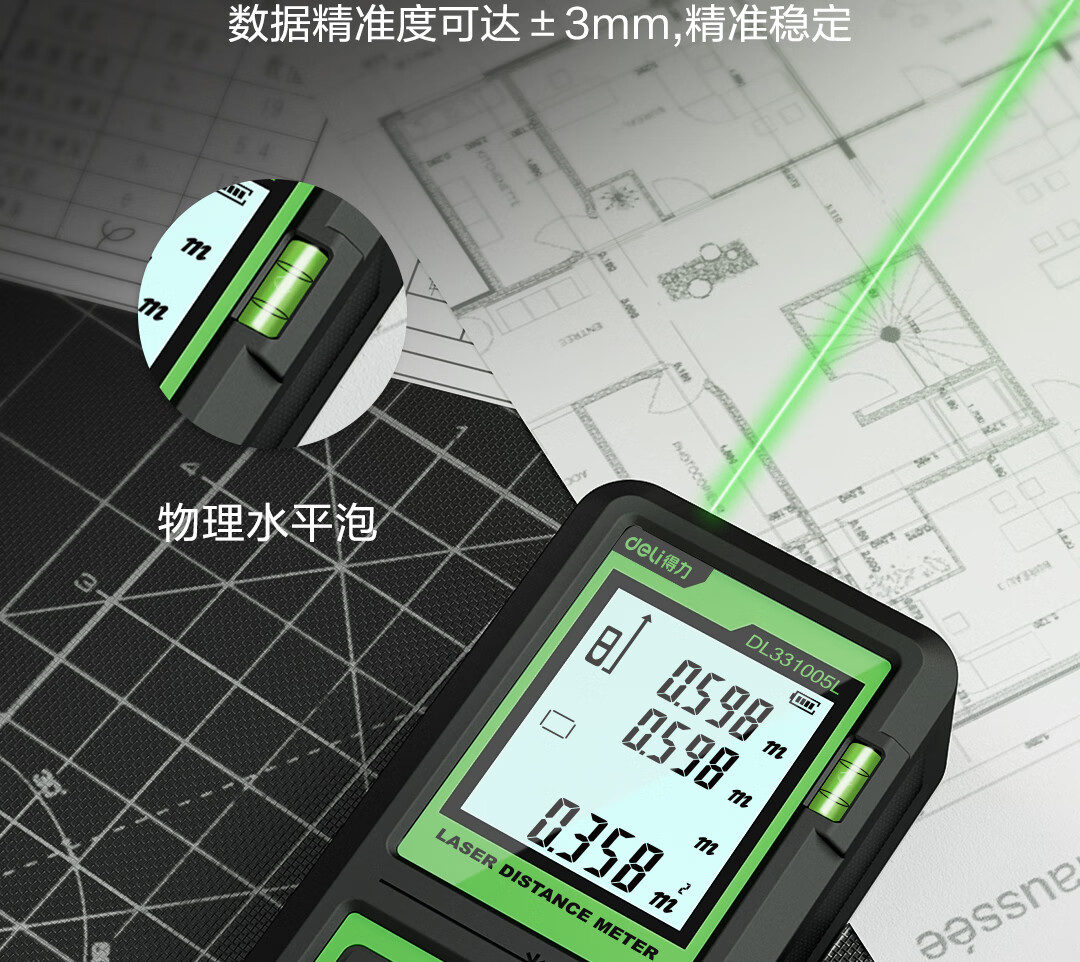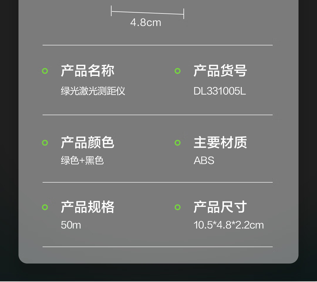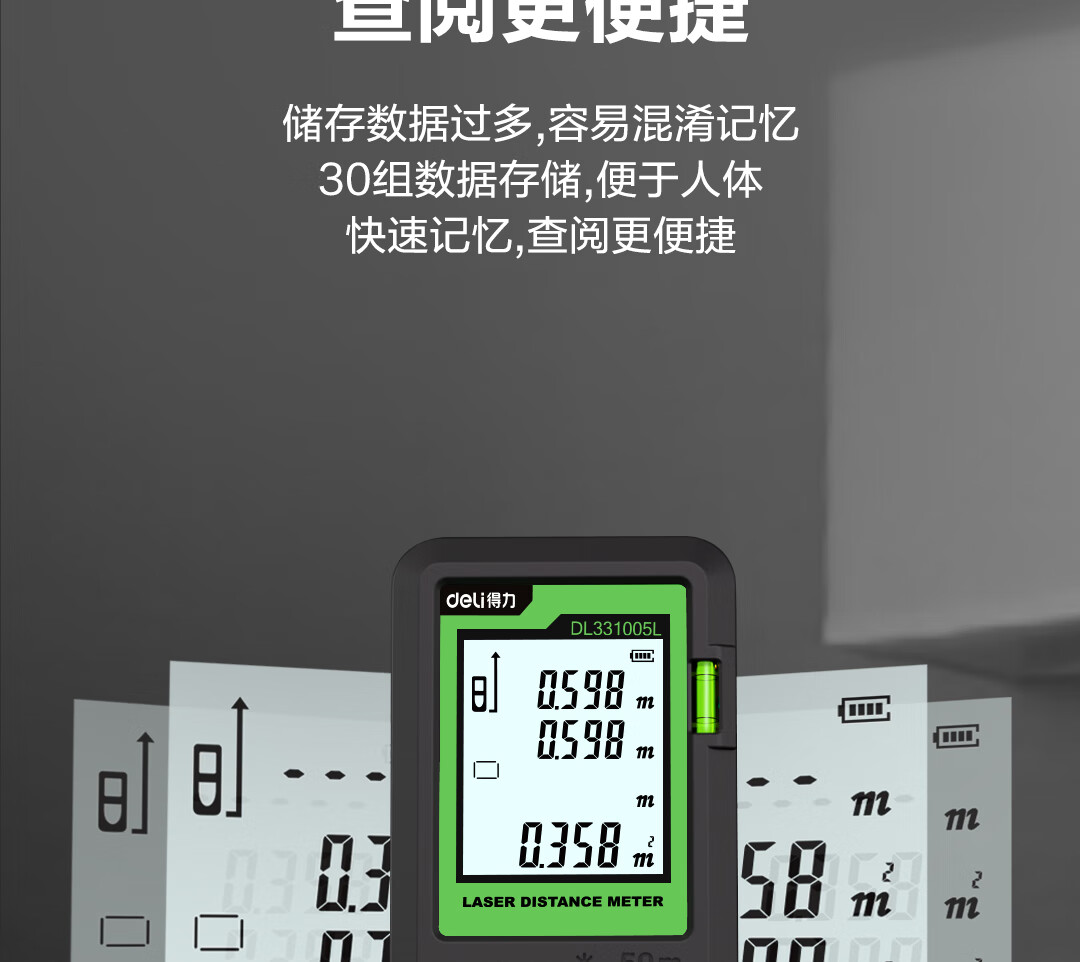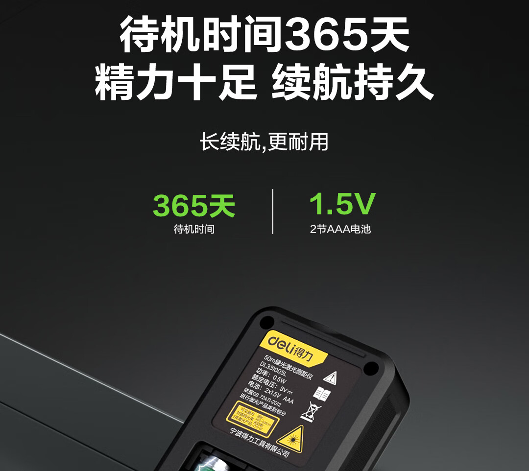 得力工具 激光测距仪50m绿光干电(绿)(台);DL331005L 货期5天