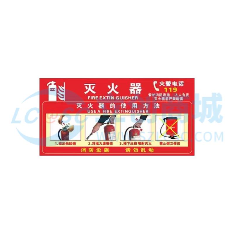 国产 定制 灭火器使用说明 15*21 覆膜不干胶标识牌 带背胶 货期3-4天 起订量:50