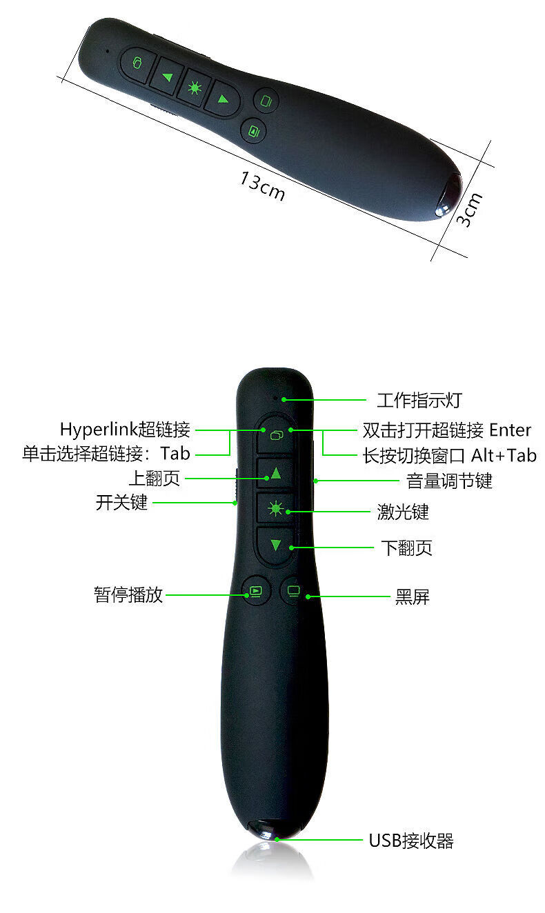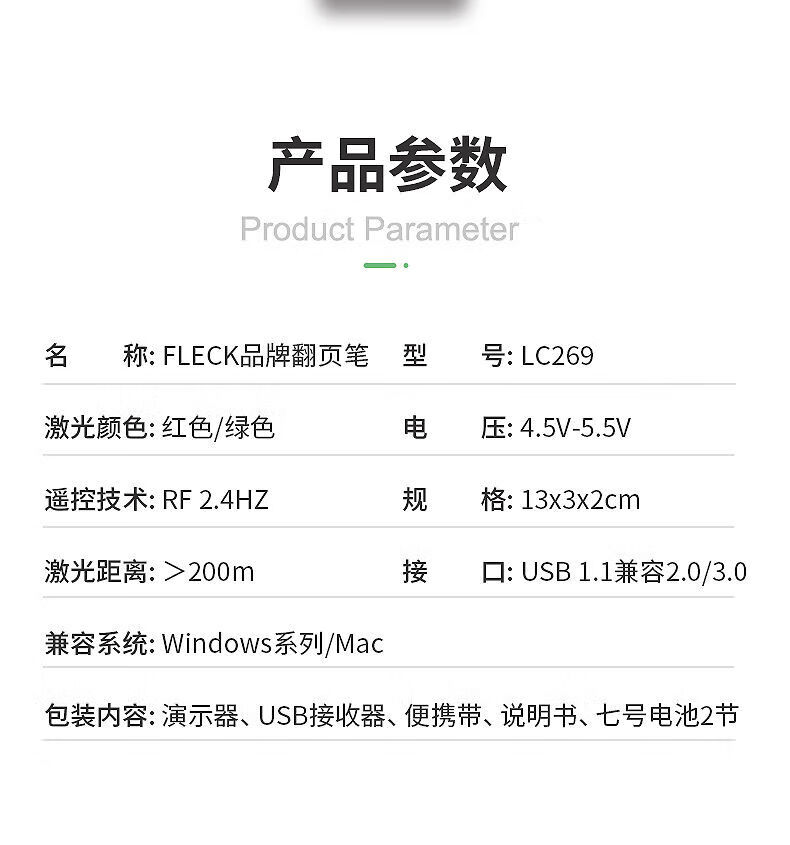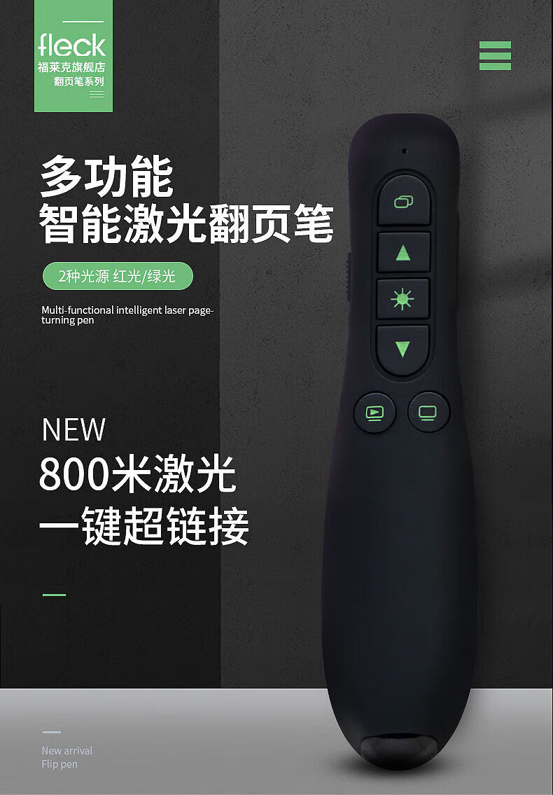 福莱克 PPT一键标注 LED大屏通用激光翻页笔亮绿激光照射大功率激光手电ppt翻页器大型会议适用