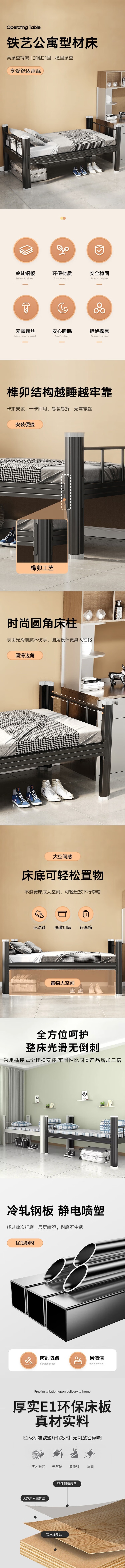 荣将铁艺床单人床铁架床拼接床公寓出租屋床架黑色含床板