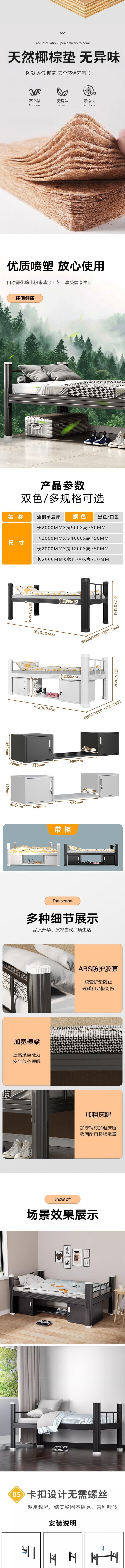 荣将铁艺床单人床铁架床拼接床公寓出租屋床架黑色含床板床垫