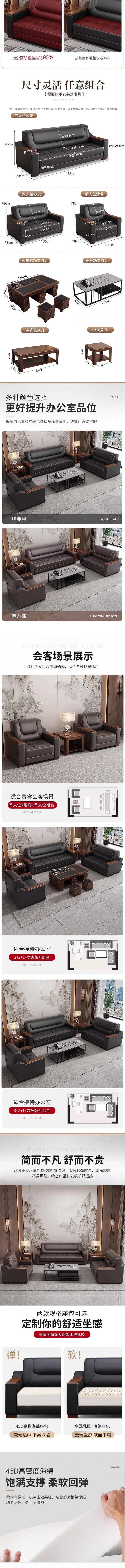 荣将办公室沙发新中式简约沙发商务接待洽谈会客休息区沙发茶几组合F