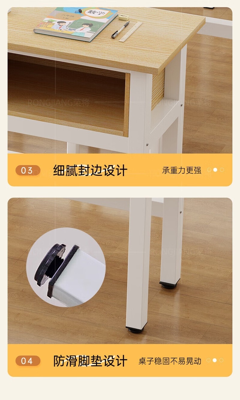 荣将学生学习课桌椅辅导班教室培训书桌双层带抽屉学习桌140cm双人桌