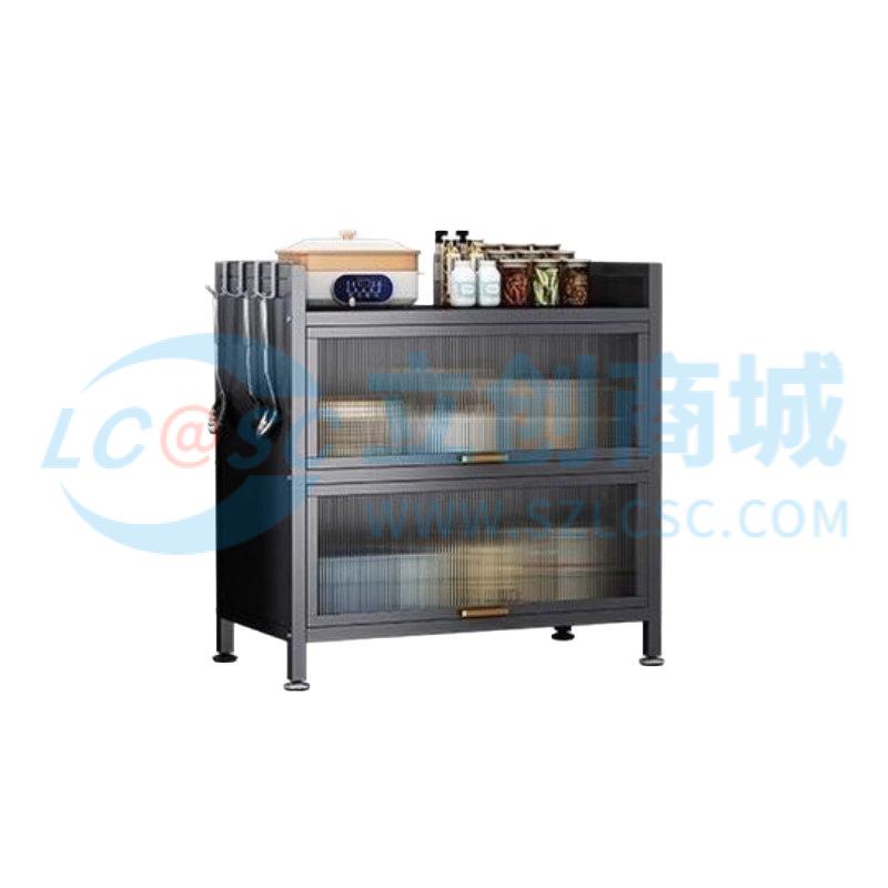 荣将荣将厨房置物架落地家用收纳柜餐边柜带门收纳橱柜三层灰100cm