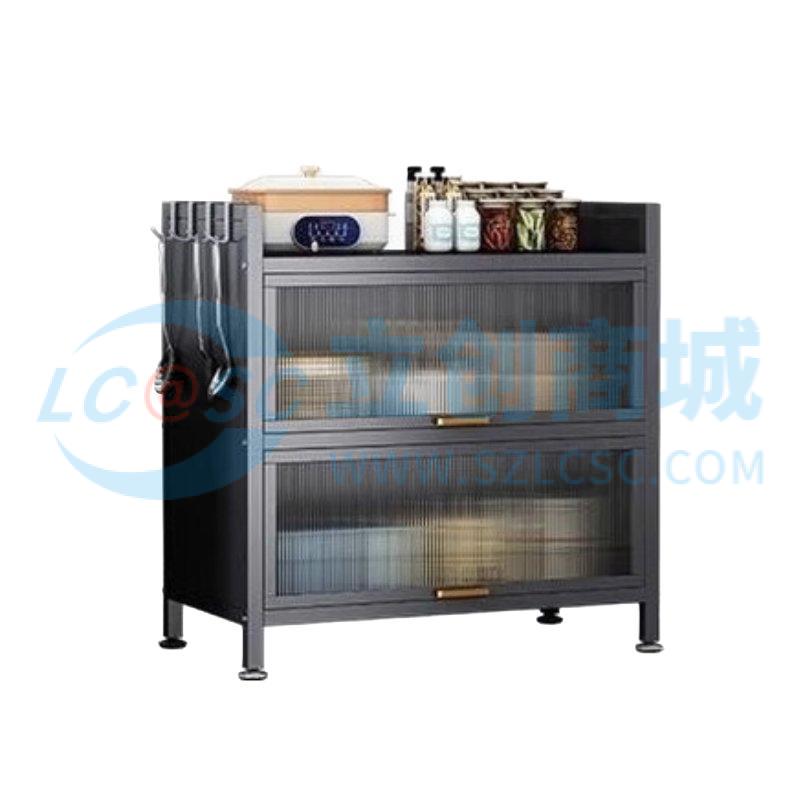 荣将厨房置物架落地家用收纳柜餐边柜带门收纳橱柜三层灰60cm