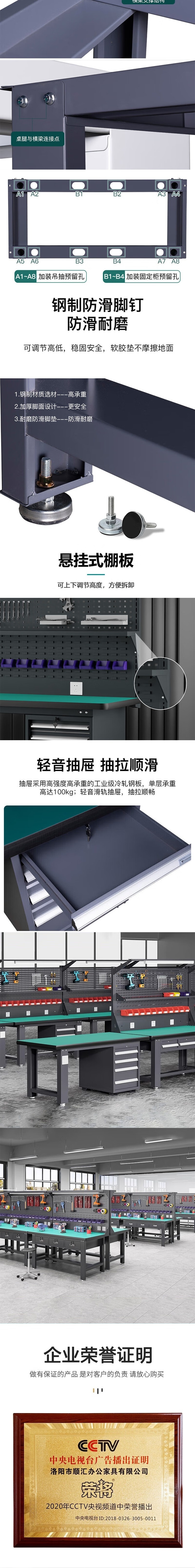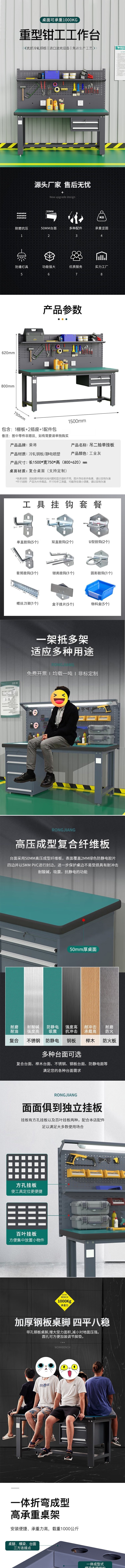 荣将重型防静电工作台操作台钳工车间工作台实验桌1.5米吊二抽单挂