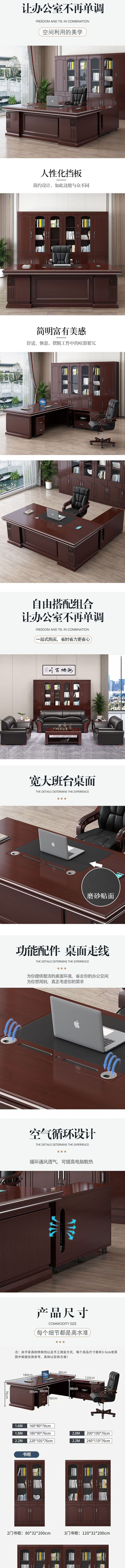 荣将老板桌总裁办公桌新中式简约大班台工作台主管经理桌 1.8米+双柜