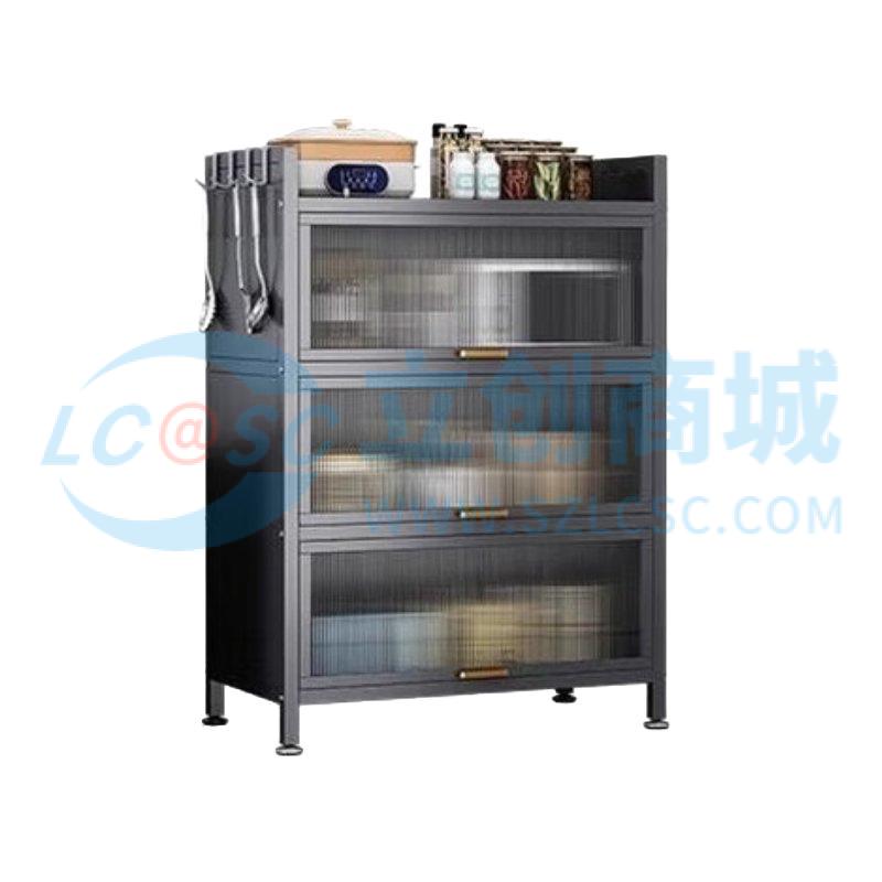 荣将厨房置物架落地家用收纳柜餐边柜带门收纳橱柜四层灰60cm