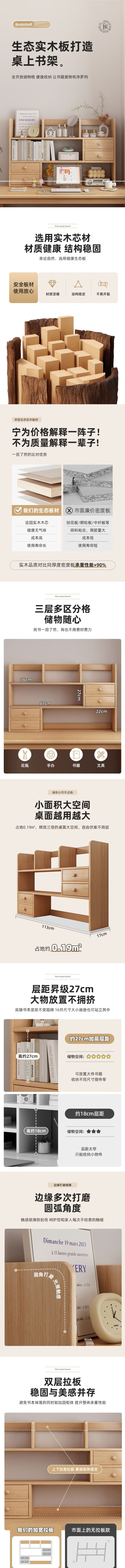 荣将实木桌面书架学生家用书桌收纳置物架桌上简易柜子储物柜儿童书柜