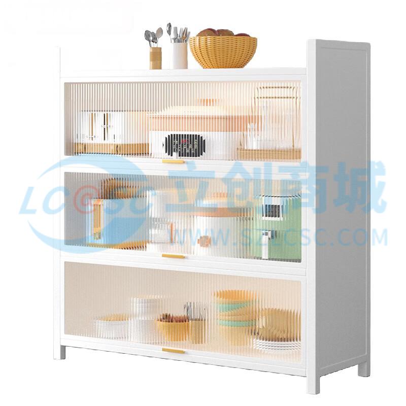 荣将厨房置物架落地家用收纳柜餐边柜带门收纳橱柜四层白90cm