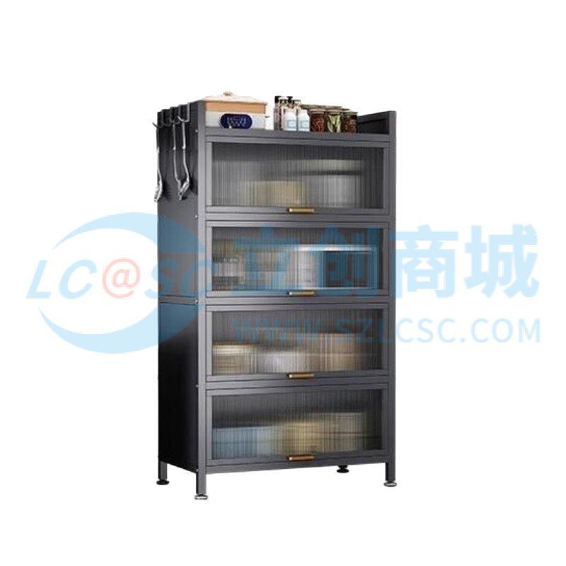 荣将厨房置物架落地家用收纳柜餐边柜带门收纳橱柜五层灰70cm