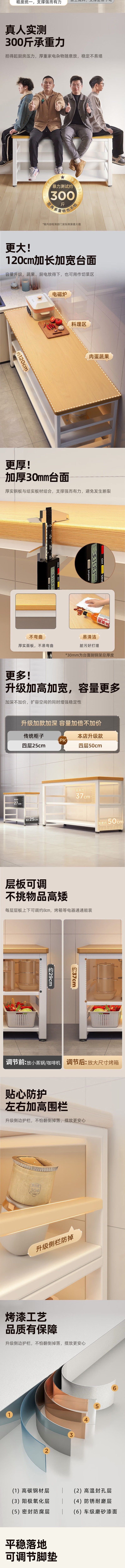 荣将厨房置物架落地微波炉烤箱收纳架多功能层架置物架100*40*80cm