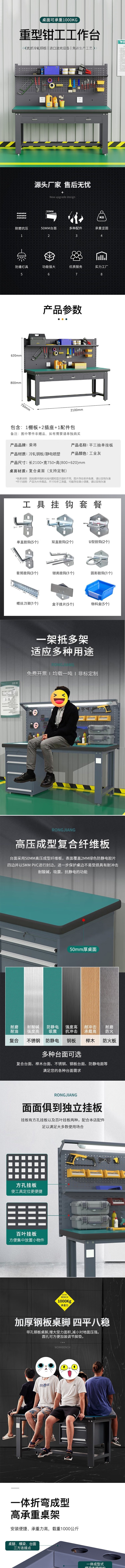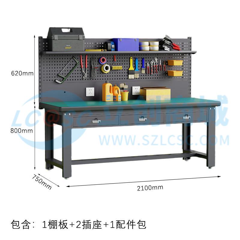 荣将重型防静电工作台操作台钳工车间工作台实验桌2.1米平三抽单挂板