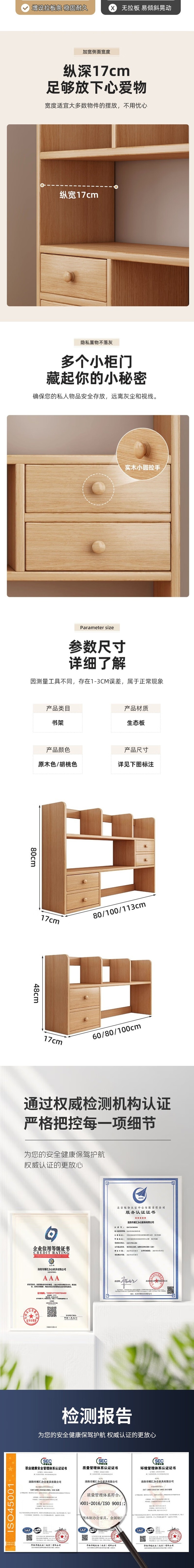 荣将实木桌面书架学生家用书桌收纳置物架桌上简易柜子储物柜儿童书柜