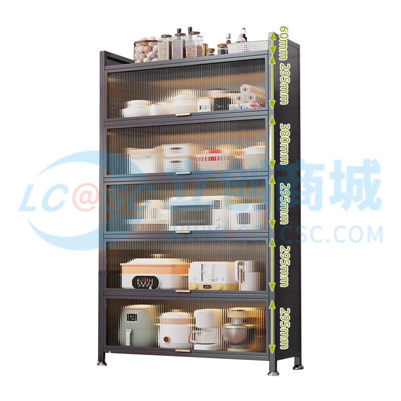 荣将厨房置物架落地家用收纳柜餐边柜带门收纳橱柜六层灰80cm