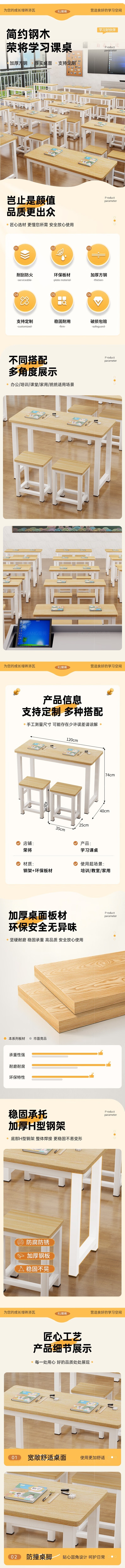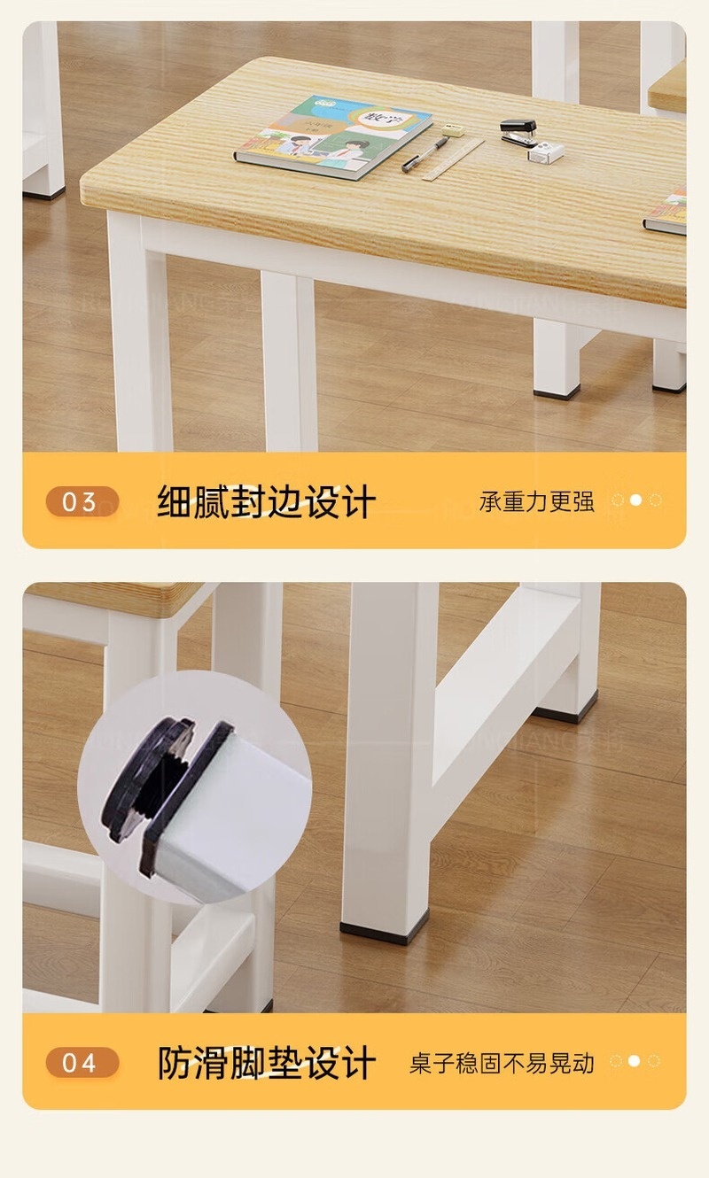 荣将学生学习课桌椅辅导班教室培训书桌单层学习桌140cm双人桌含凳