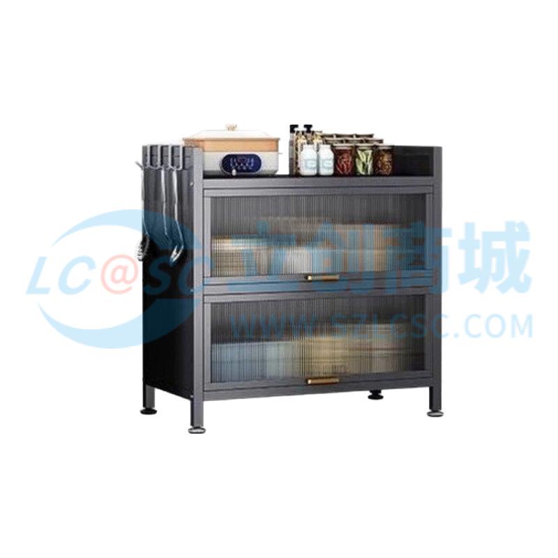 荣将厨房置物架落地家用收纳柜餐边柜带门收纳橱柜三层灰60cm