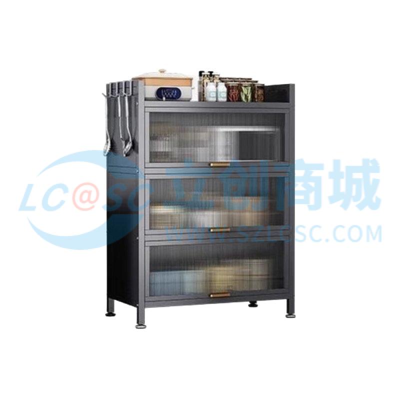 荣将厨房置物架落地家用收纳柜餐边柜带门收纳橱柜四层灰90cm