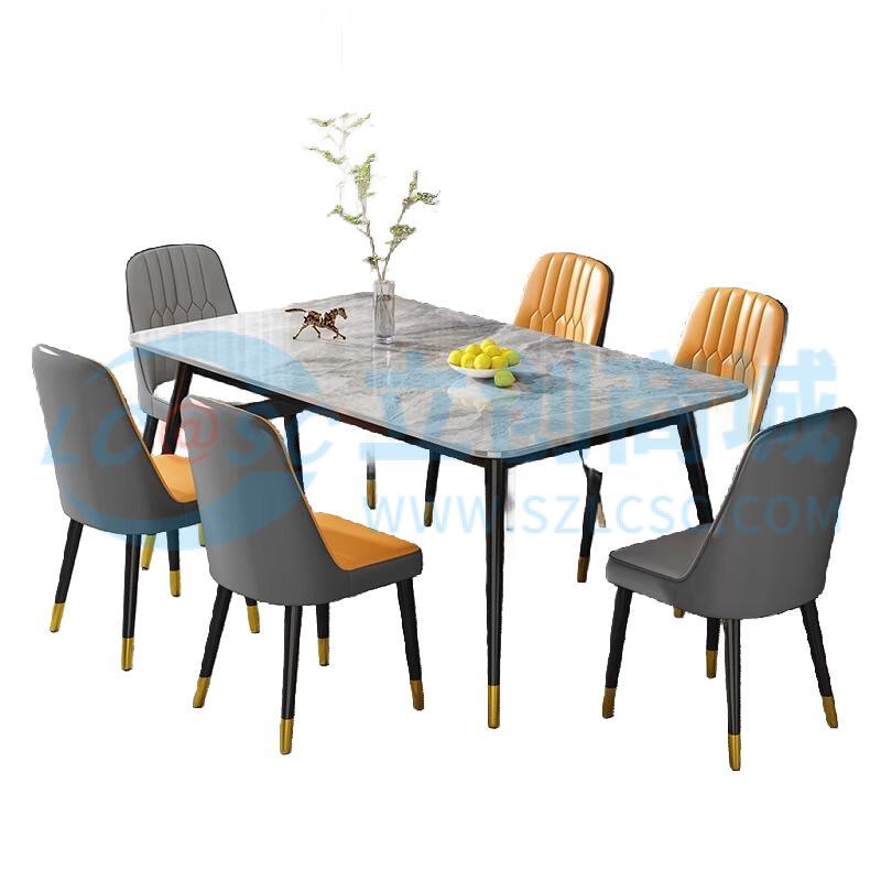 荣将岩板餐桌家用餐桌椅组合轻奢现代简约小户型客厅桌子灰1.6+6椅