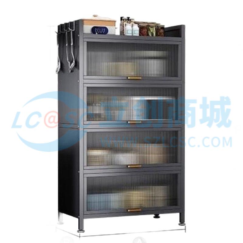 荣将厨房置物架落地家用收纳柜餐边柜带门收纳橱柜五层灰100cm