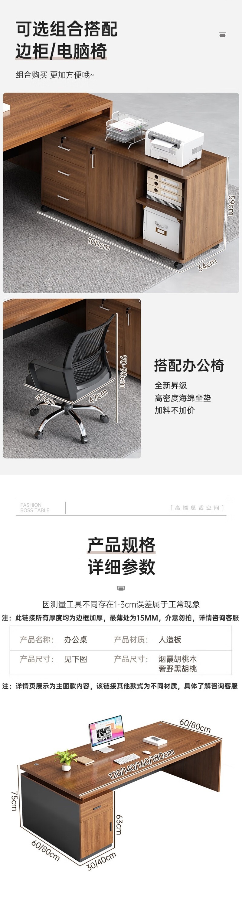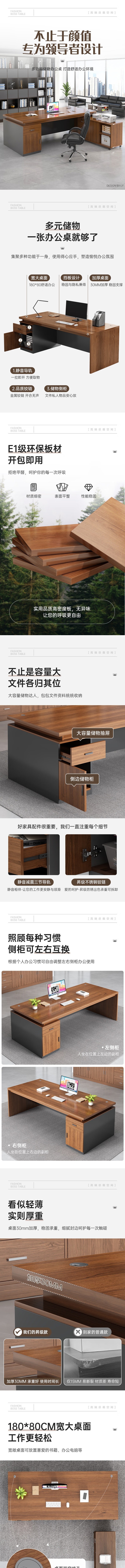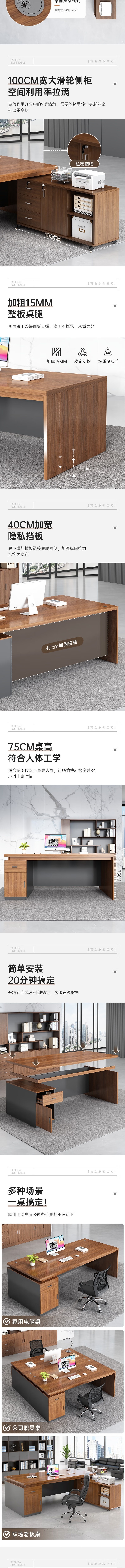 荣将办公桌老板桌班台写字台中型经理桌办公室电脑桌140*60胡桃色