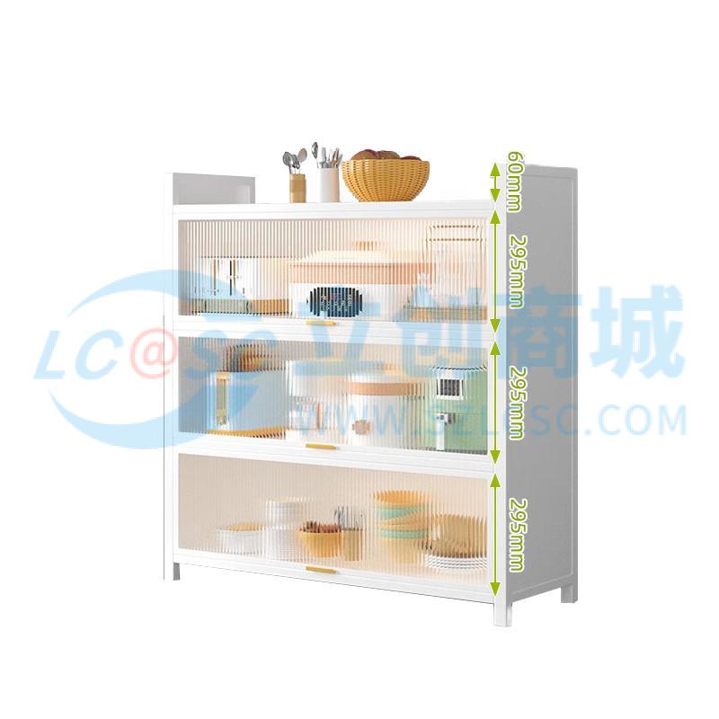 荣将厨房置物架落地家用收纳柜餐边柜带门收纳橱柜四层白80cm