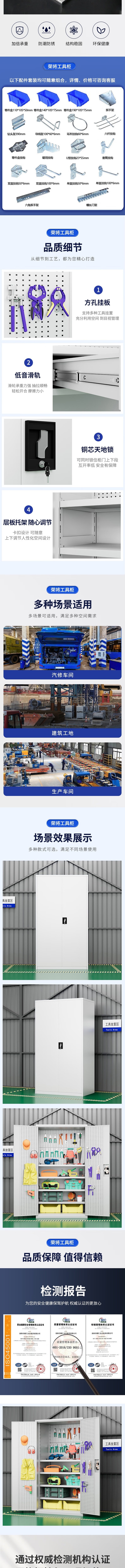 荣将工具柜车间用重型工具收纳柜带挂板五金工具储物柜铁皮柜灰白二抽