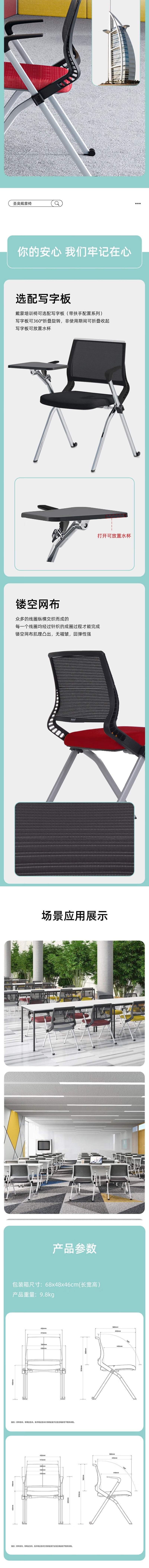 荣将折叠椅培训椅无写字板会议椅电脑椅办公椅学习椅黑色无轮定型棉款