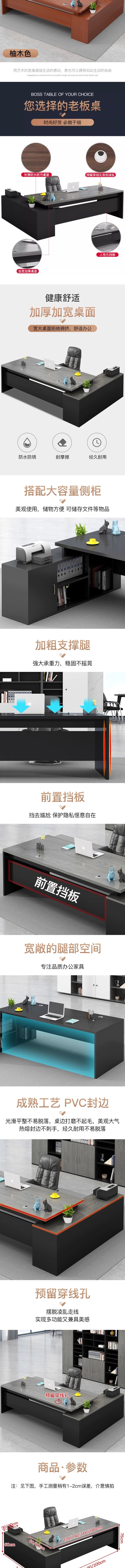 荣将老板桌简约现代总裁桌办公室大班台经理主管办公桌160*80含侧柜