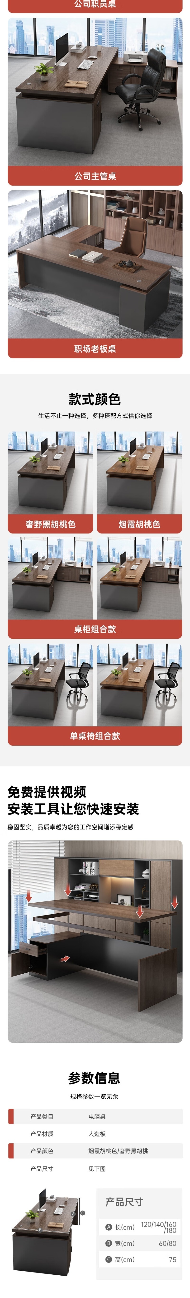 荣将办公桌老板桌班台写字台中型经理桌办公室电脑桌 160*80黑胡桃
