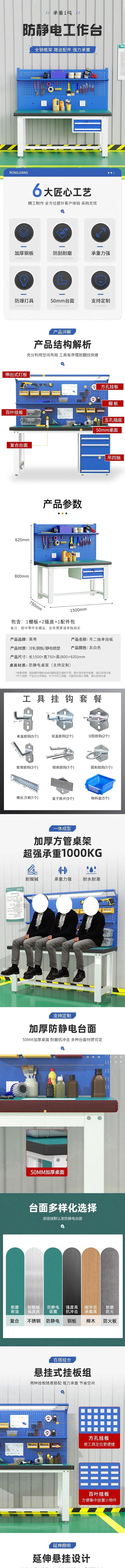 荣将防静电工作台重型钳工操作台桌带灯带抽屉车间流水线实验室