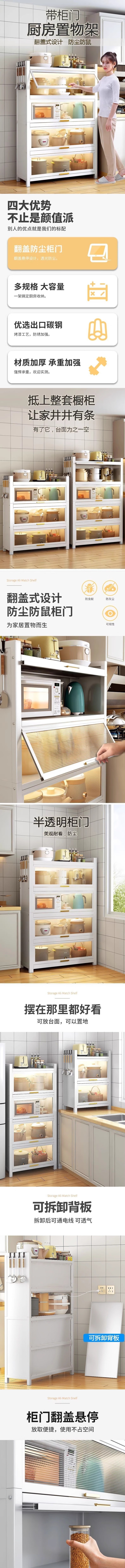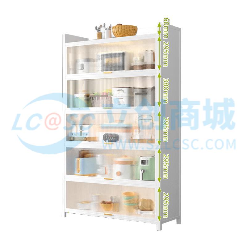 荣将厨房置物架落地家用收纳柜餐边柜带门收纳橱柜六层白90cm