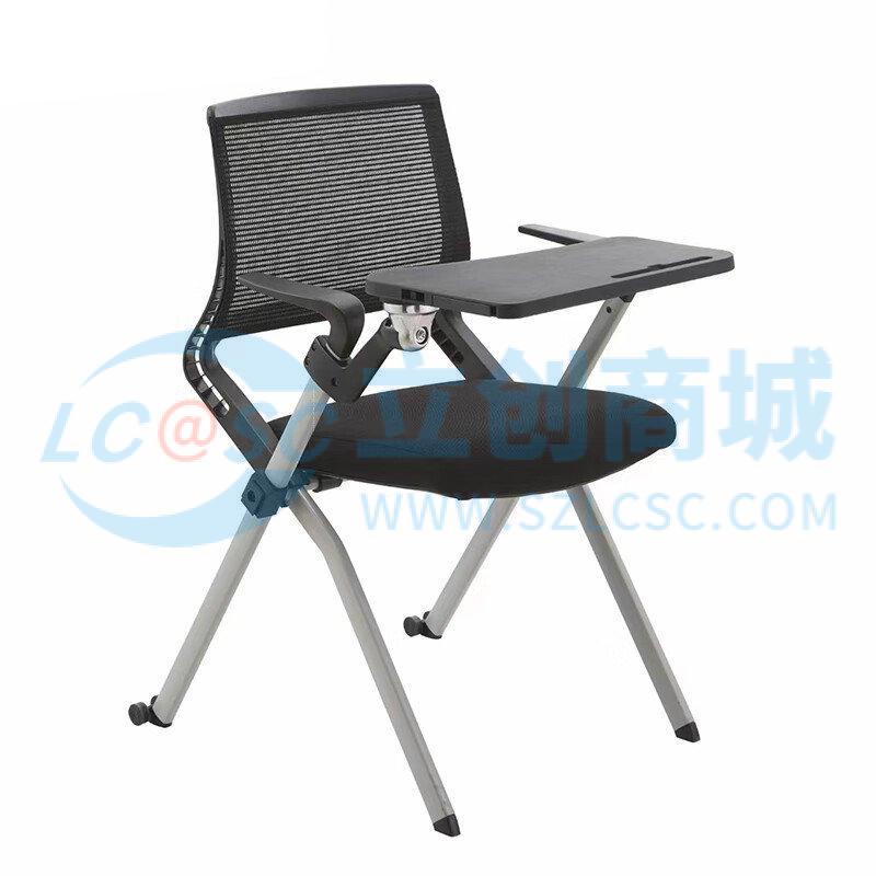 荣将折叠椅培训椅有写字板会议椅电脑椅办公椅学习椅黑色无轮定型棉款