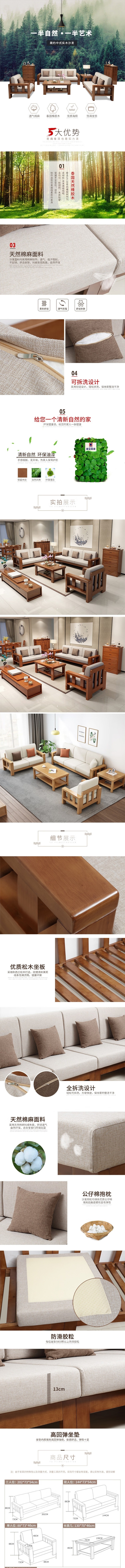 荣将实木沙发新中式沙发小户型轻奢沙发椅冬夏两用沙发茶几组合D5