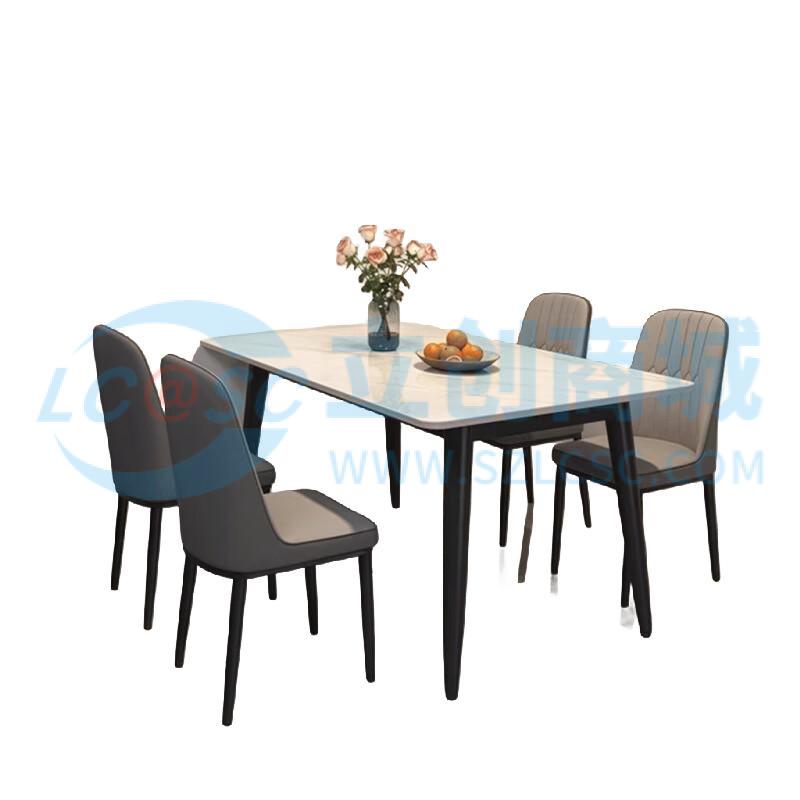 荣将岩板餐桌家用餐桌椅组合轻奢现代简约小户型客厅桌子白1.2+6椅